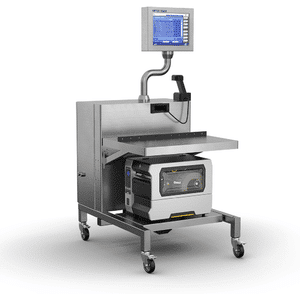 Featuring a height-adjustable work surface, a swiveling HMI and flexible printer positions, this system works for both standing or seated work positions providing an optimal ergonomic setup.