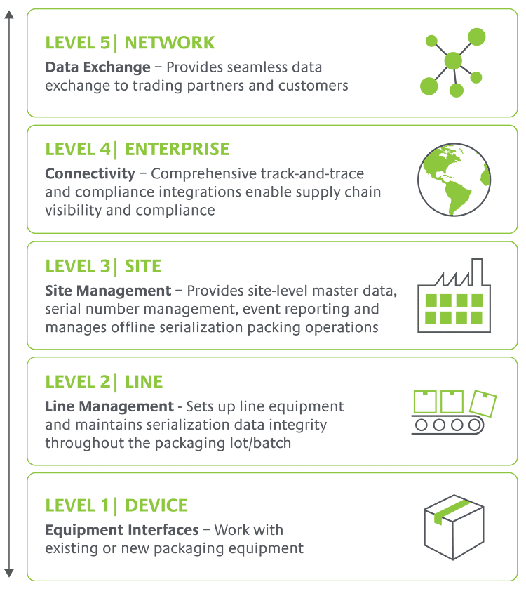 Our proven software platform covers the full stack—from Level 1 to Level 5—for unbeatable ease of implementation and speed to compliance. Equipment-agnostic, configurable solutions give you flexibility to adapt to new pharma regulatory compliance requirements cost-effectively without customizing for every change, wherever you do business.